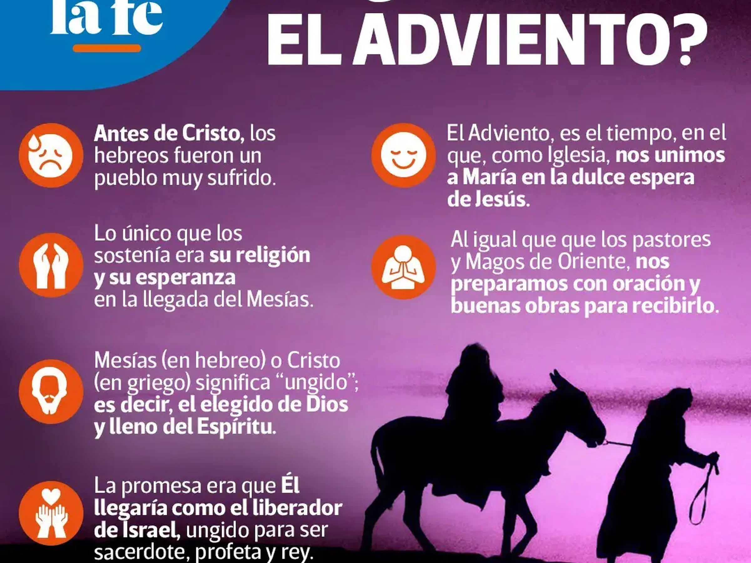 La Iglesia Católica propone antes del 25 de diciembre, fiesta de la Natividad del Señor, un tiempo de preparación espiritual que abarca cuatro domingos. Este tiempo se llama Adviento, que quiere decir “venida”. El Adviento 2025 empieza el domingo 30 de noviembre y termina el 24 de diciembre, el domingo antes de Navidad.