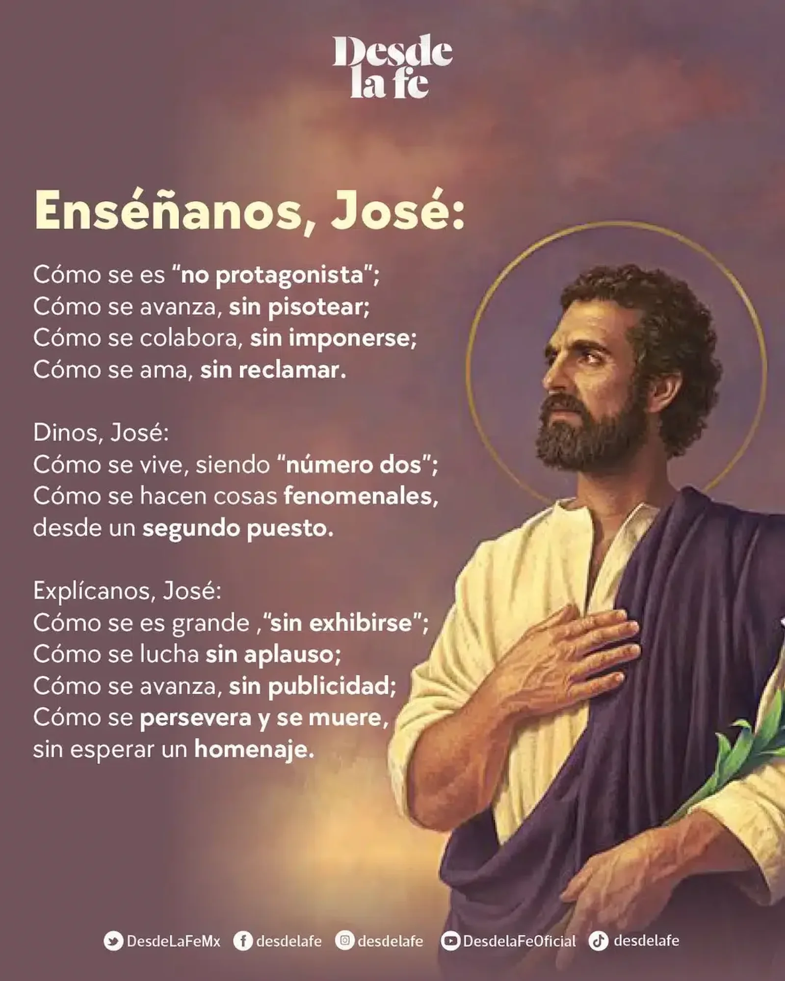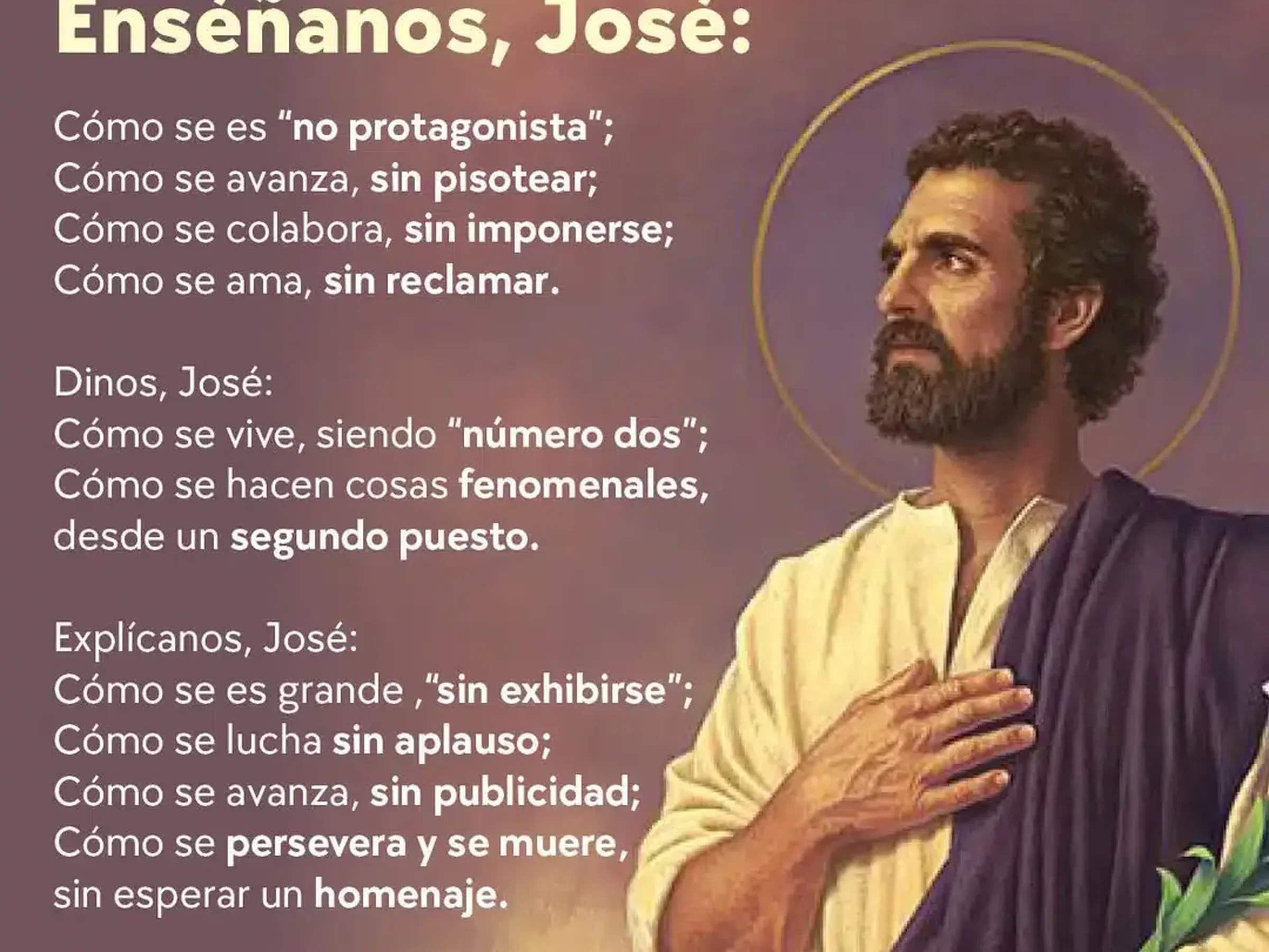 “José es mi protector. José ha abierto los brazos para recibirme y salvarme. José va a hacer de mí una persona nueva. José va a borrar mis malas inclinaciones. José va a ser mi guía en el camino de las virtudes; y José, en fin, rogará a Dios por mí y yo seré salvo. Amén”.