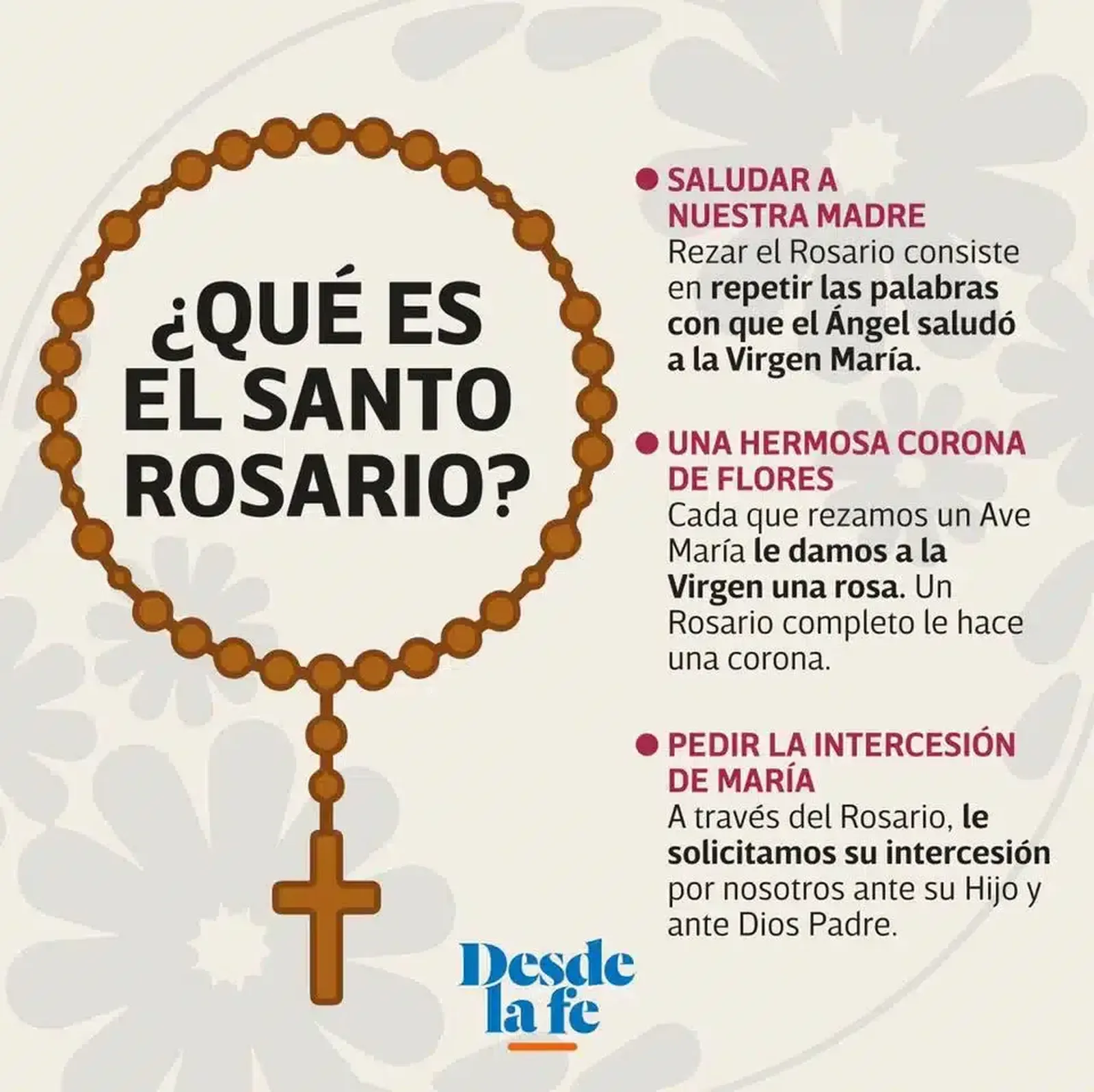 Se llama “Rosario” porque es como una colección de rosas preciosas ofrecidas a Dios a través de la más preciosa rosa que es la Virgen María.
