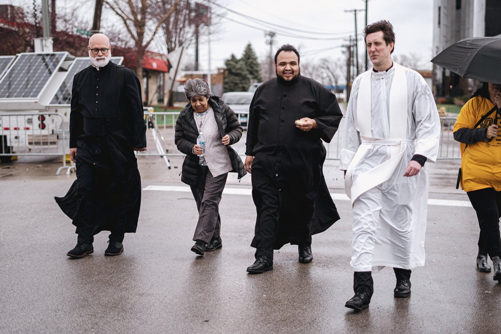 “Tuvimos el evento en el jardín delantero, con una barbacoa y un camión de comida, todo provisto por la parroquia. Fue un gran evento para la gente del barrio. Yo era el fotógrafo, así que estaba buscando sesiones fotográficas. Me di la vuelta y justo en los escalones de la entrada de la iglesia estaban el hermano Andre (Beale) y otro fraile con un grupo de cinco jóvenes, y les habían dado rosarios a todos", dijo Knauss. "Posaron para una foto con los rosarios, y pensé que era realmente hermoso".