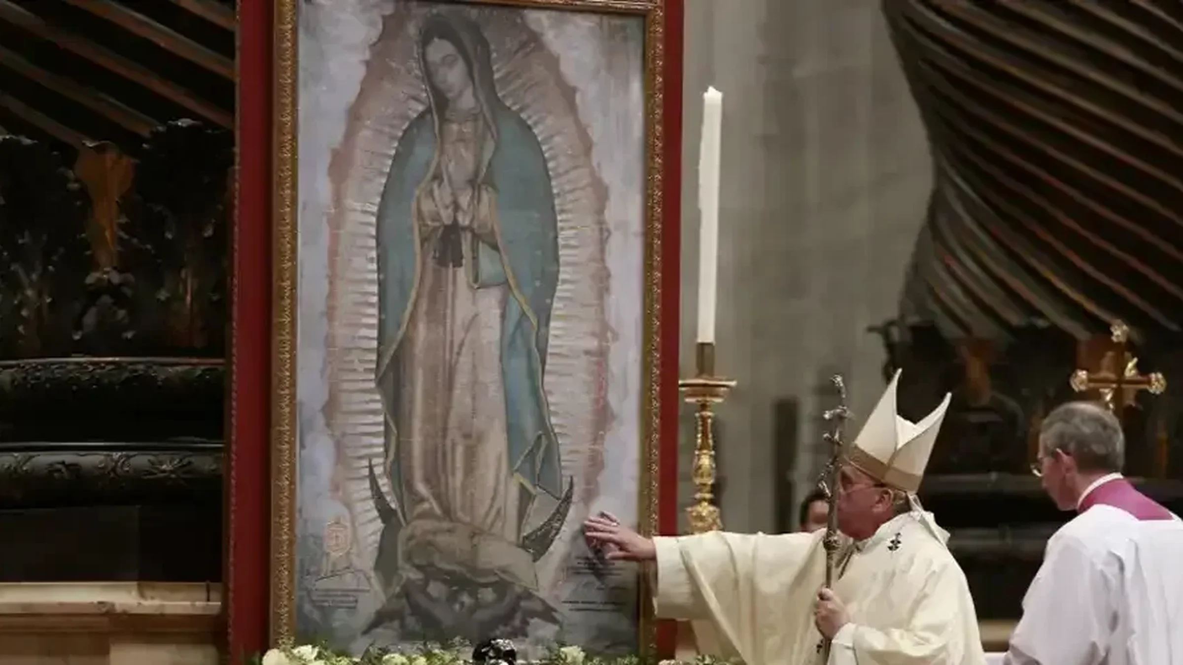 La imagen que preside las celebraciones del Papa Francisco en cada Fiesta de Nuestra Señora de Guadalupe es muy especial: Es un regalo que llegó al Vaticano desde México, y fue tocada por el manto original en el que se apareció milagrosamente Santa María, hace casi 500 años.