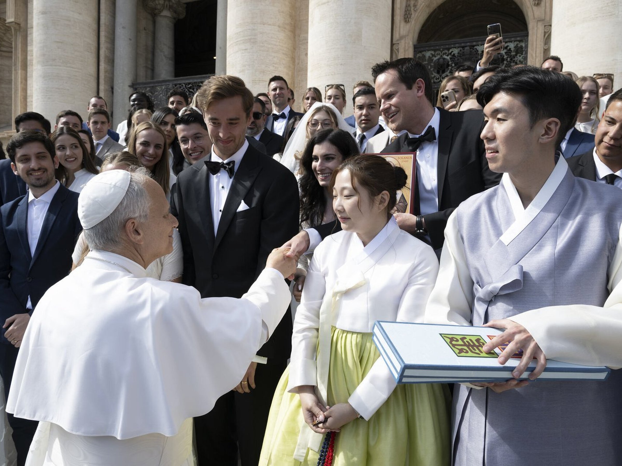 Apenas unos días más tarde, los recién casados vivieron otro momento único, cuando se encontraron con el papa León XIV en Roma, ciudad que eligieron para su luna de miel.