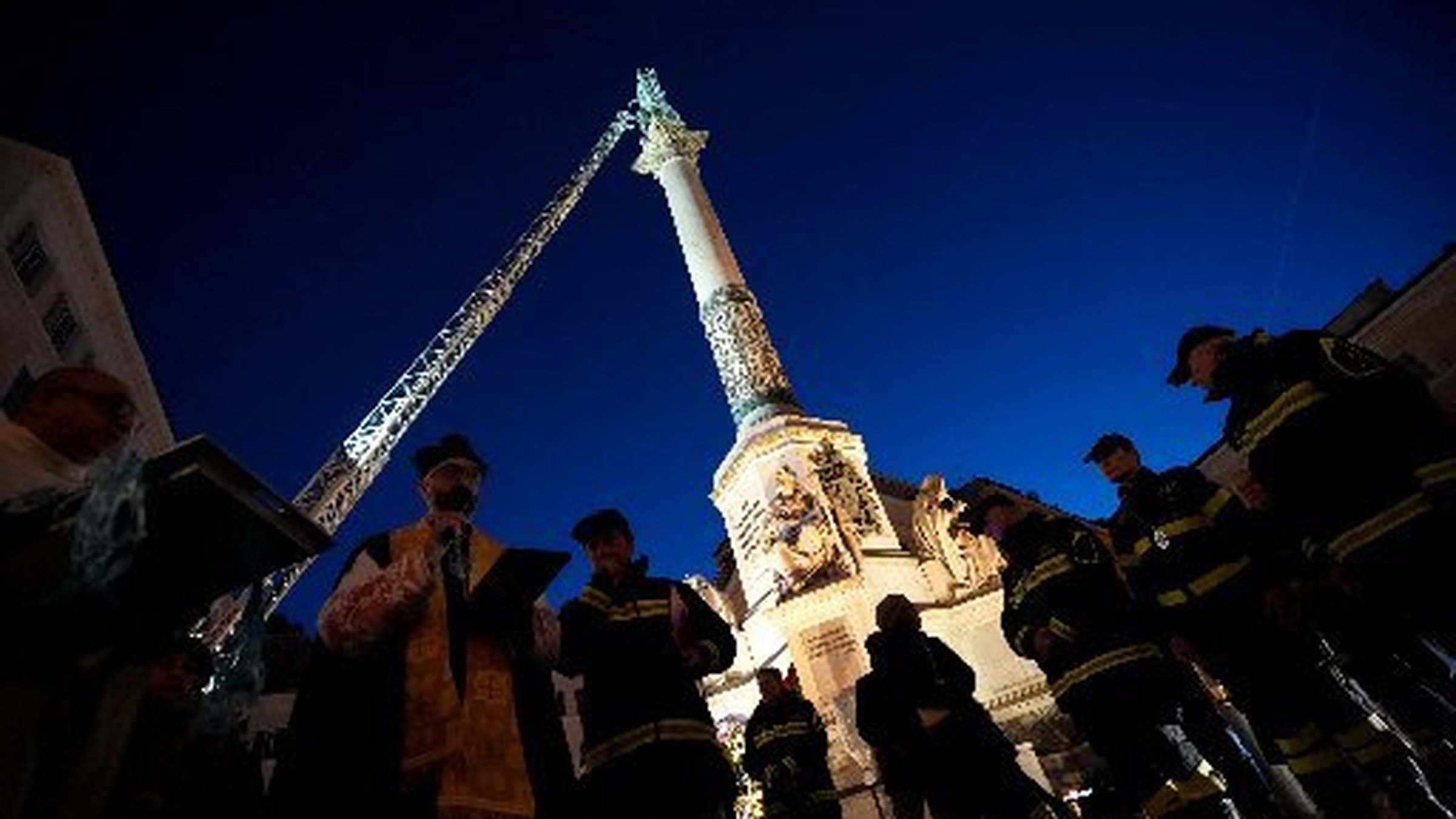 Al amanecer de ese día, un bombero llamado Roberto Leo, el jefe de departamento con más años de servicio en el cuerpo de bomberos de Roma, subió los 100 peldaños de una escalera aérea para colocar una corona de flores blancas en los brazos extendidos de la estatua, a unos 27 metros del suelo.