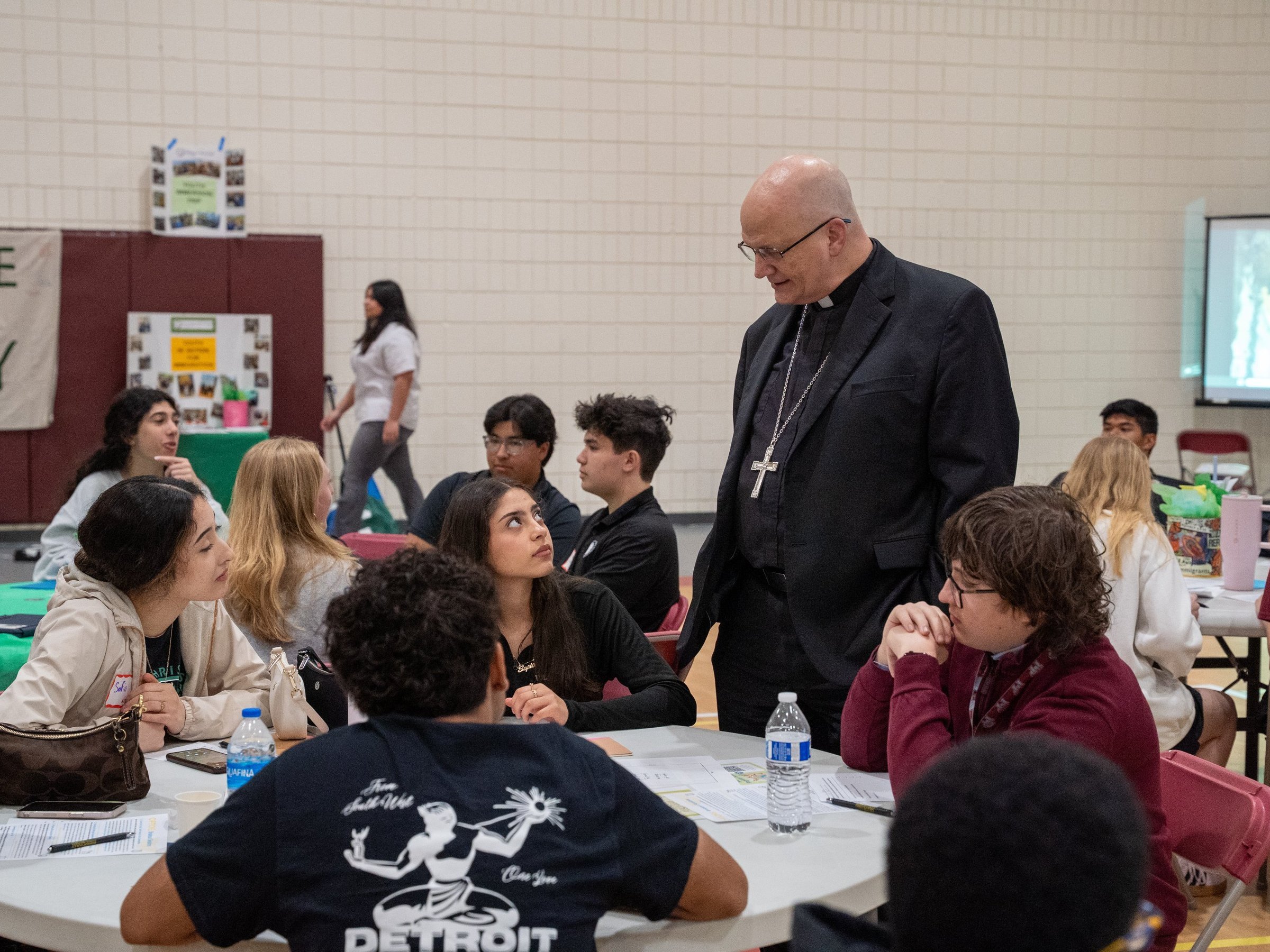 El arzobispo de Detroit, Edward J. Weisenburger, dialogó con los estudiantes al inicio de la conferencia y expresó su alegría al ver a tantos jóvenes comprometidos en la defensa de la dignidad humana.