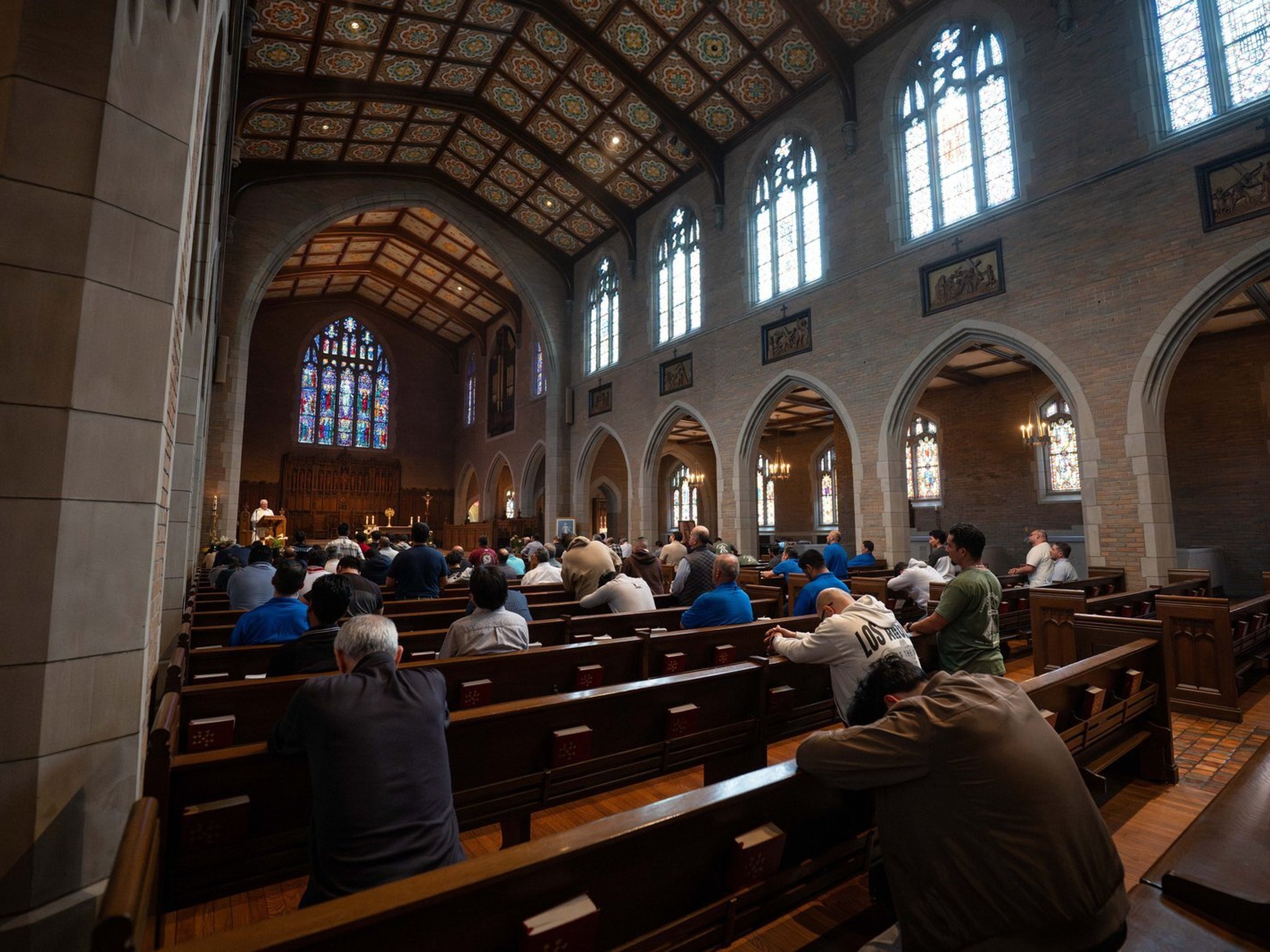 Uno de los momentos más profundos fue la Hora Santa, guiada por el P. Florek, que preparó el corazón de los participantes para la celebración eucarística. El día culminó con la Santa Misa presidida por el arzobispo de Detroit, Edward J. Weisenburger, quien quiso hacerse presente a pesar de haber tenido una semana particularmente exigente, acompañando a los hombres en este momento clave de su vida de fe.