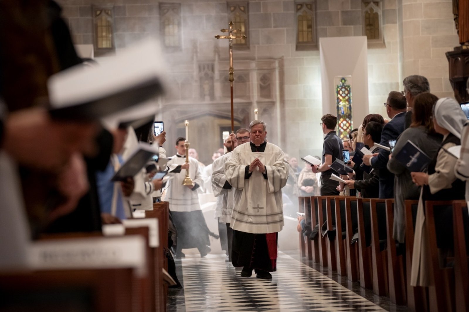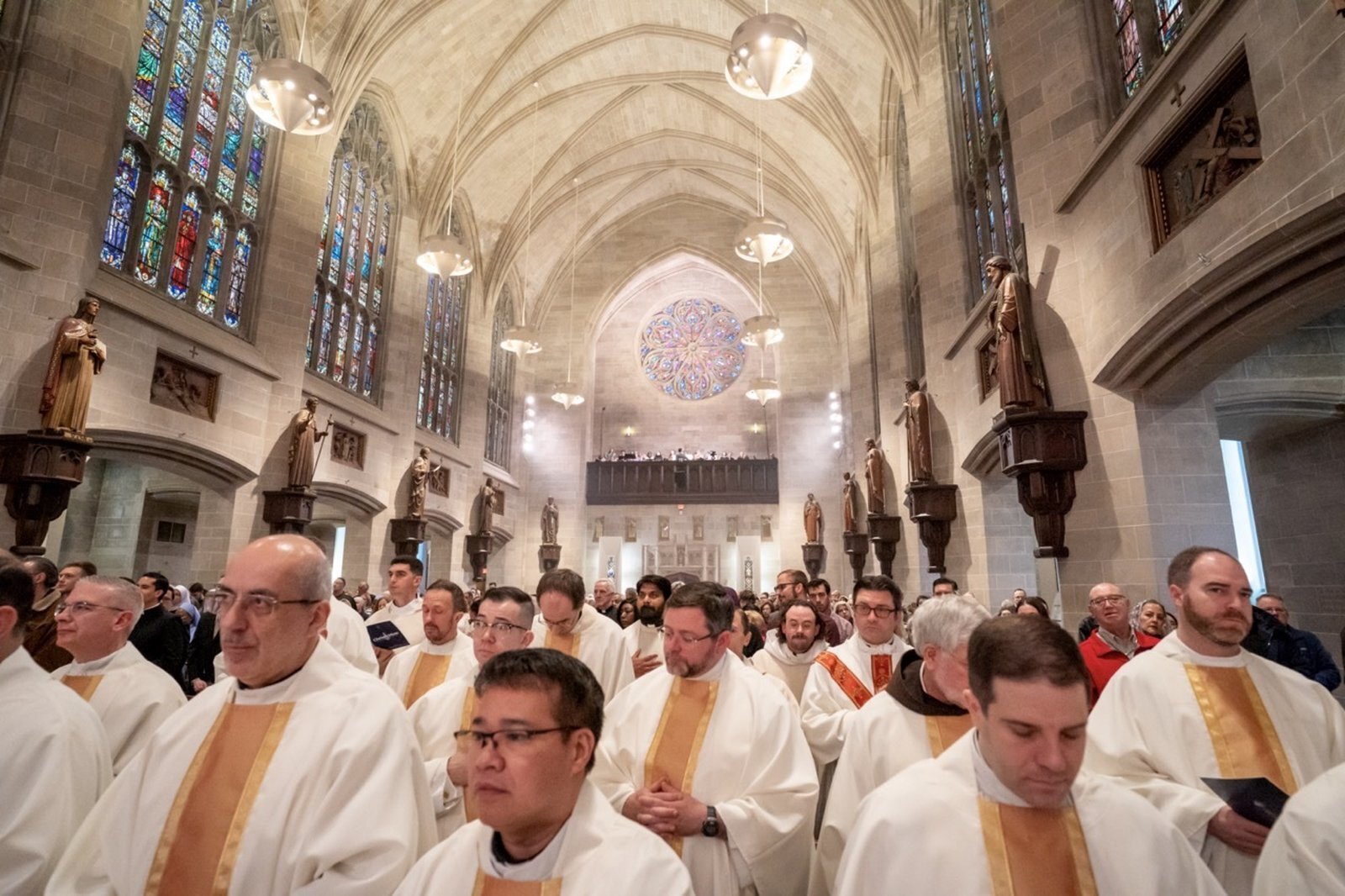 DETROIT — El 2 de abril, sacerdotes de toda la Arquidiócesis de Detroit se reunieron para celebrar la Misa Crismal anual junto al arzobispo Edward J. Weisenburger en la Cathedral of the Most Blessed Sacrament, donde recibieron los óleos sagrados que se utilizarán durante el próximo año en bautismos, confirmaciones, unciones, ordenaciones y en la consagración de iglesias y altares en el sudeste de Michigan.