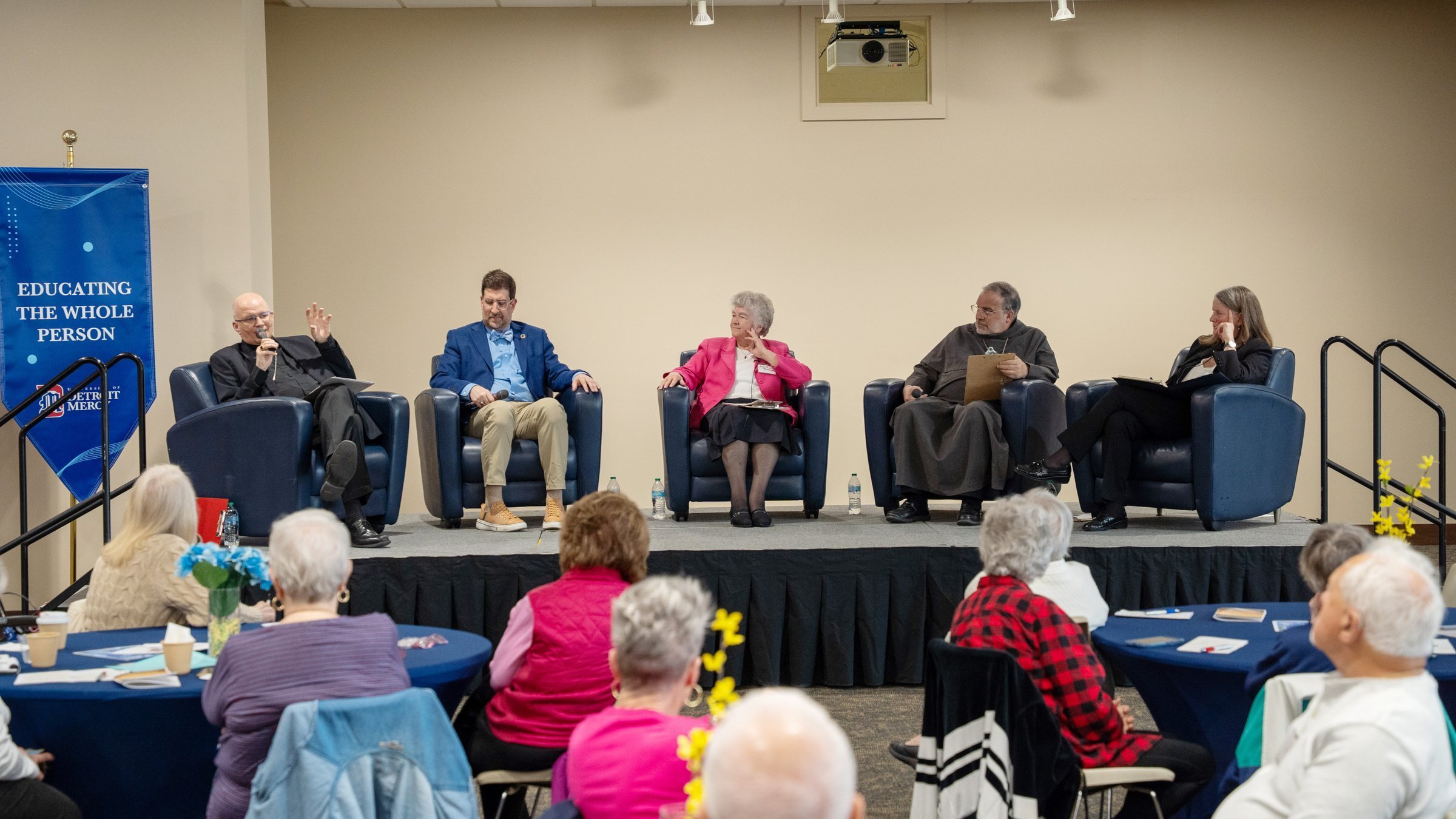 El panel de la tarde fue moderado por la autora y consultora en liderazgo Bridget Deegan-Krause, M.Div., BCC, y contó con la participación del arzobispo de Detroit, Edward J. Weisenburger; el obispo John E. Stowe, de Lexington (Kentucky); la hermana Helen Marie Burns, RSM, miembro del directorio de la universidad y expresidenta de la Leadership Conference of Women Religious; y Matt Mio, Ph.D., director del departamento y profesor de larga trayectoria en química y bioquímica en Detroit Mercy.