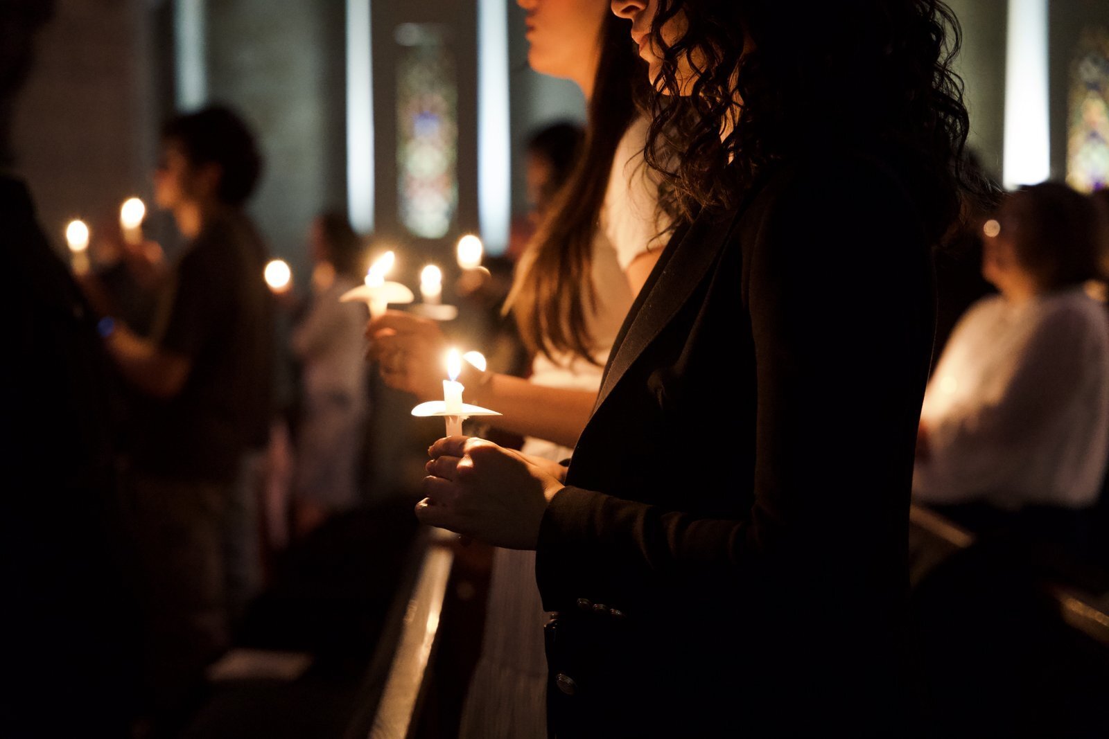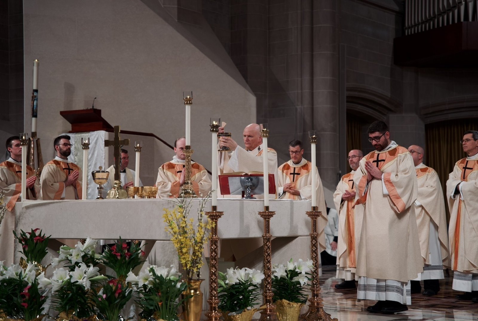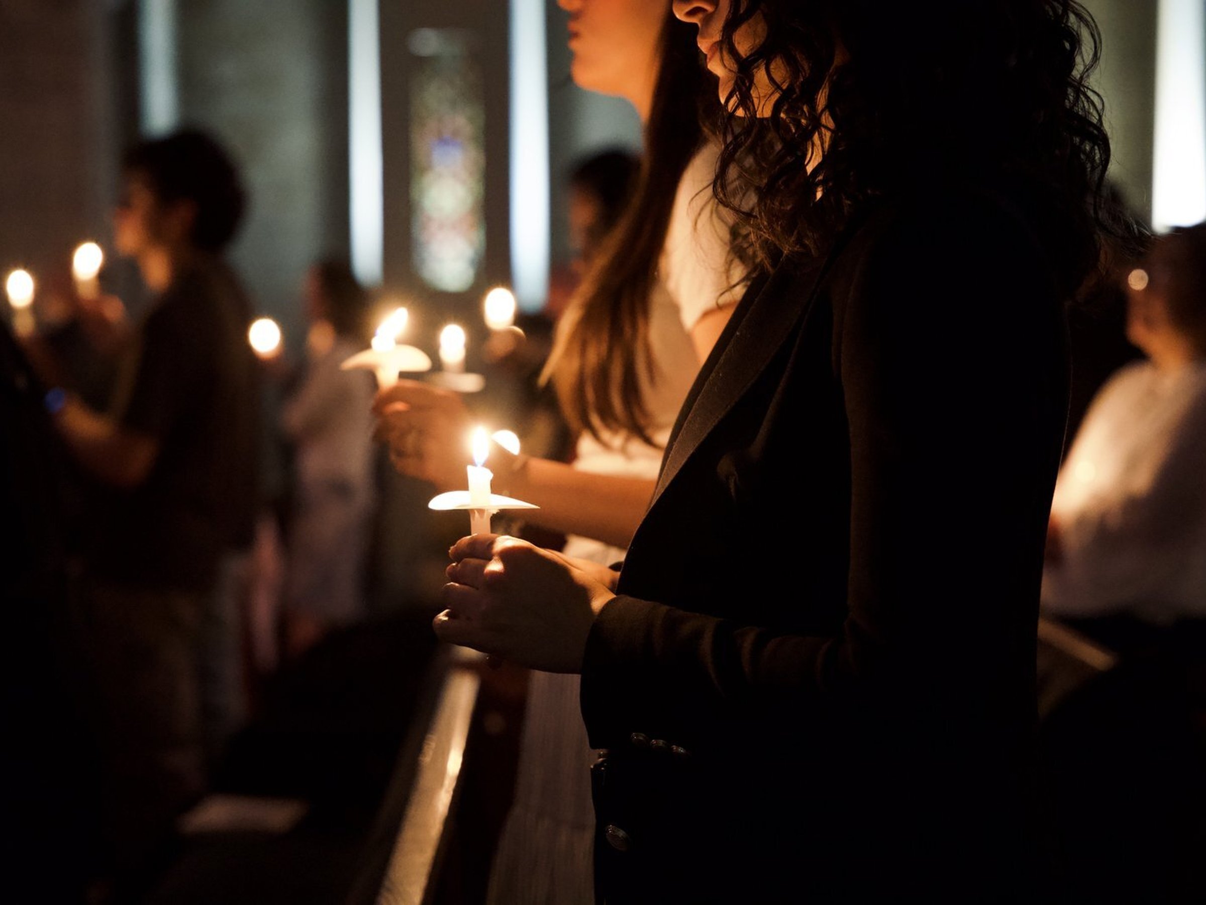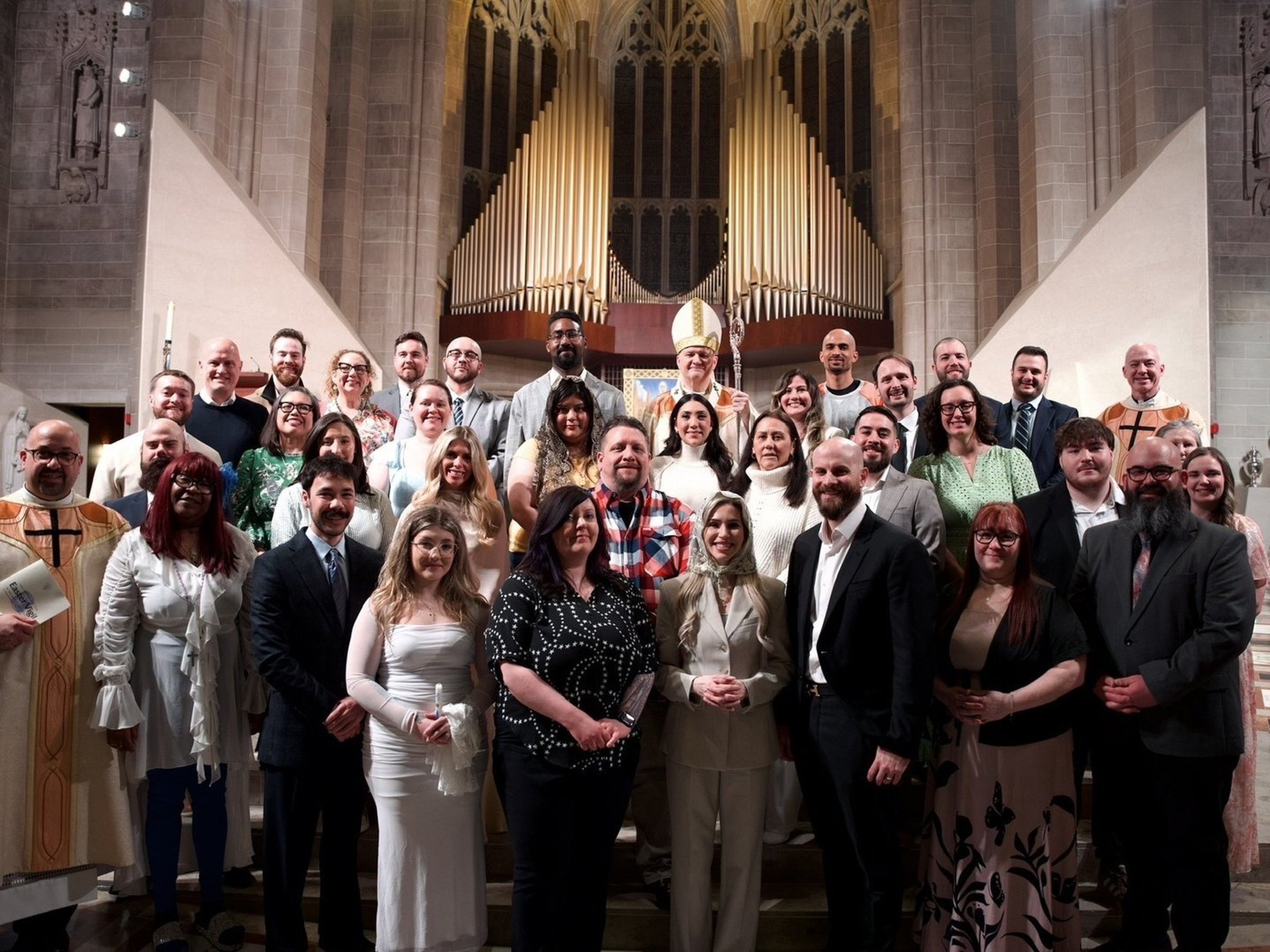 La catedral se iluminó con velas mientras el arzobispo Weisenburger y los nuevos fieles dieron inicio al tiempo pascual