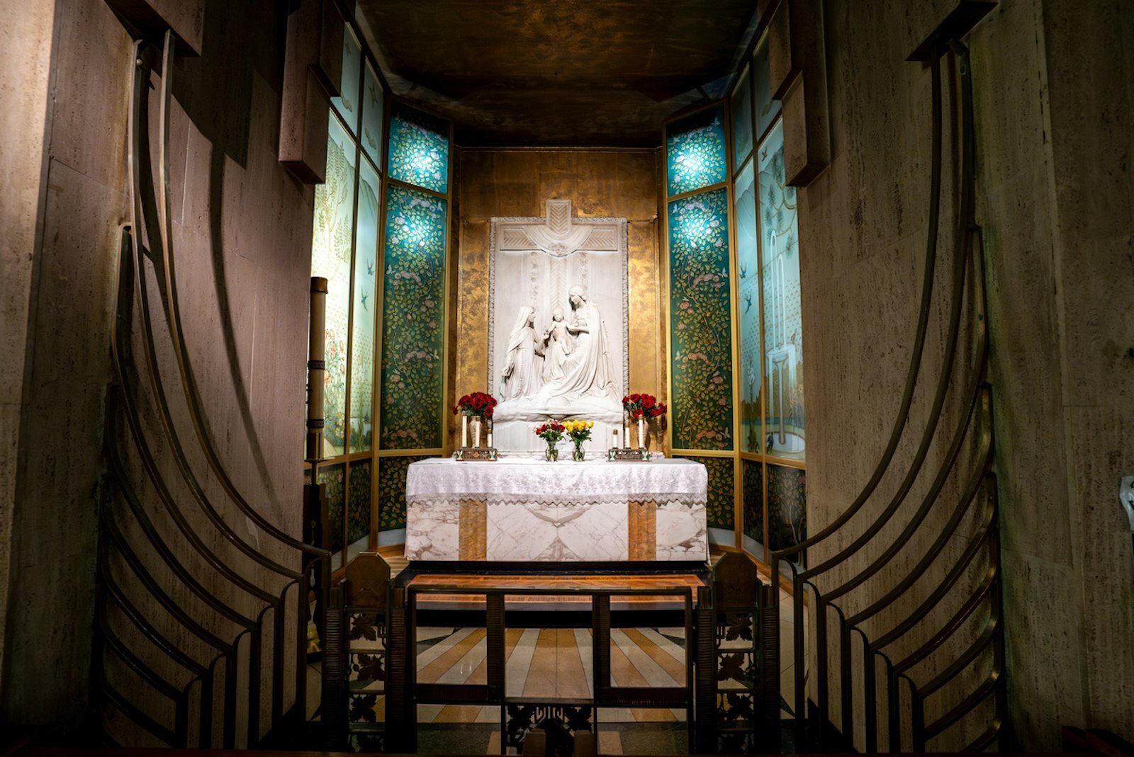 La mejor manera de explorar el National Shrine of the Little Flower Basilica es agendar un recorrido con uno de los guías expertos de la parroquia, muchos de los cuales, como Rohr, han sido feligreses de toda la vida.