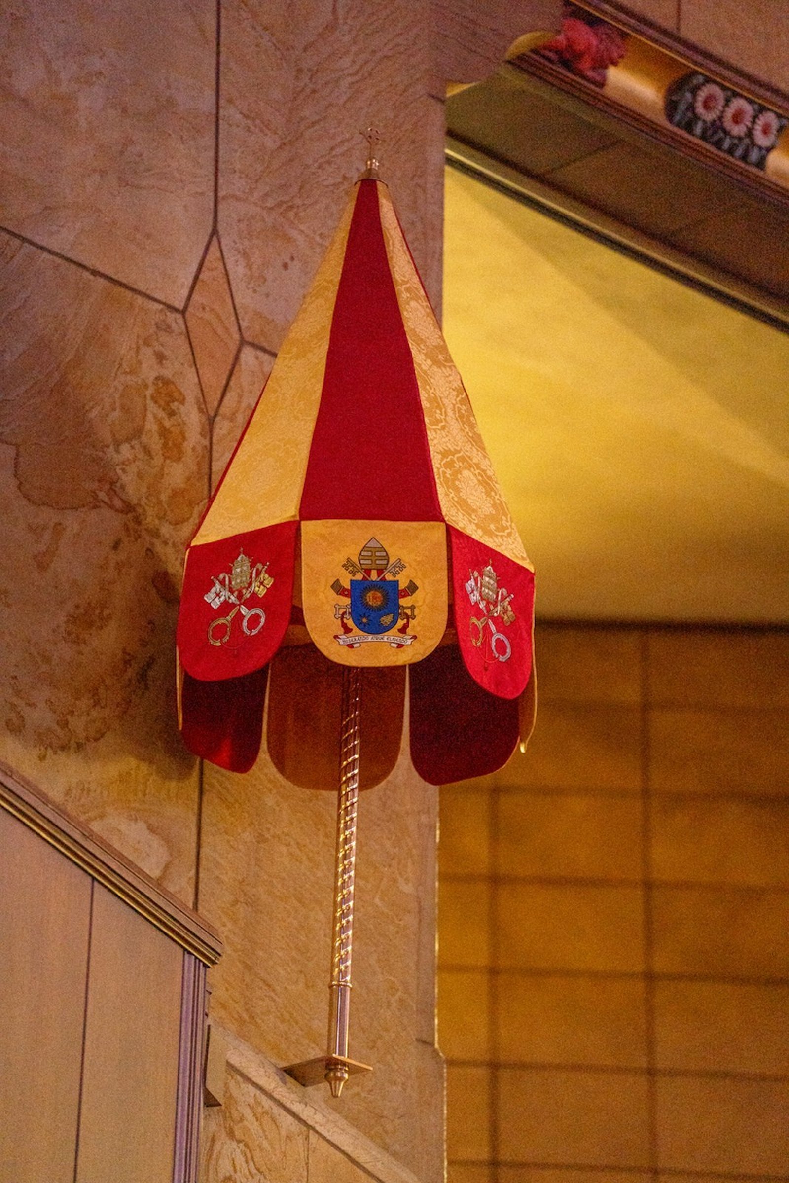 Como basílica, el National Shrine of the Little Flower mantiene una conexión especial con el Papa y la Iglesia de Roma. Entre los privilegios que conlleva este título está el uso de las "llaves cruzadas" papales en estandartes y mobiliario, así como la presencia de elementos distintivos en el santuario, como el ombrellino y el tintinnabulum. El ombrellino se parece a un paraguas medio cerrado, y el tintinnabulum es una campana ceremonial especial, ambos símbolos de la disposición de la basílica para recibir la visita del Santo Padre.