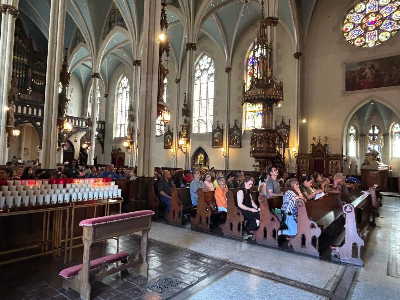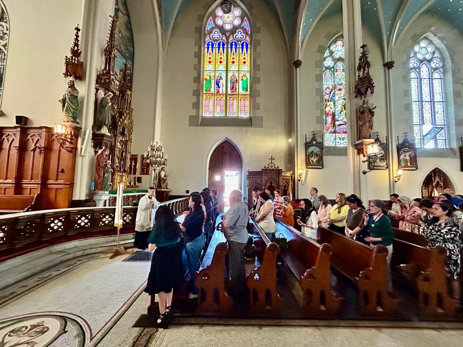 El día comenzó en la Catedral del Santísimo Sacramento con el rezo del Santo Rosario, seguido por una visita al Santuario de San José, donde el grupo presenció un bautismo y recibió la bendición del P. Stephen Sharpe. La última parada fue el Centro del Beato Solanus Casey, donde se celebró la Sagrada Misa presidida por el P. Saúl Ortiz Brionol, quien se encontraba de visita desde Aguascalientes.