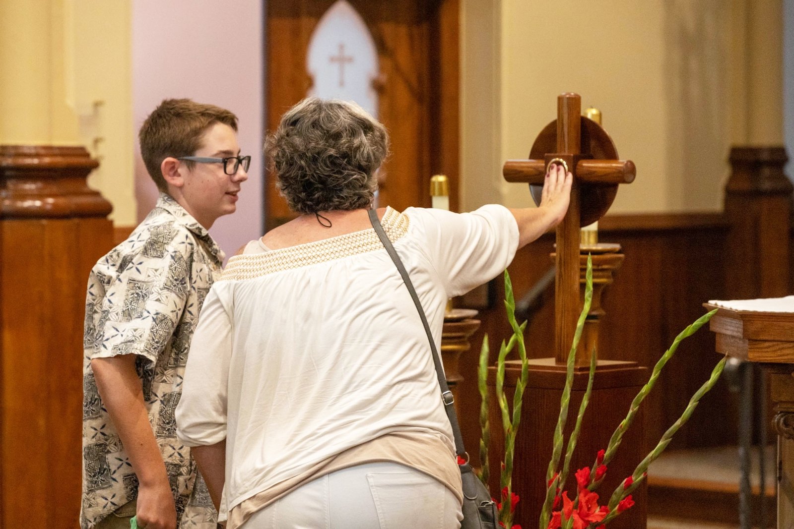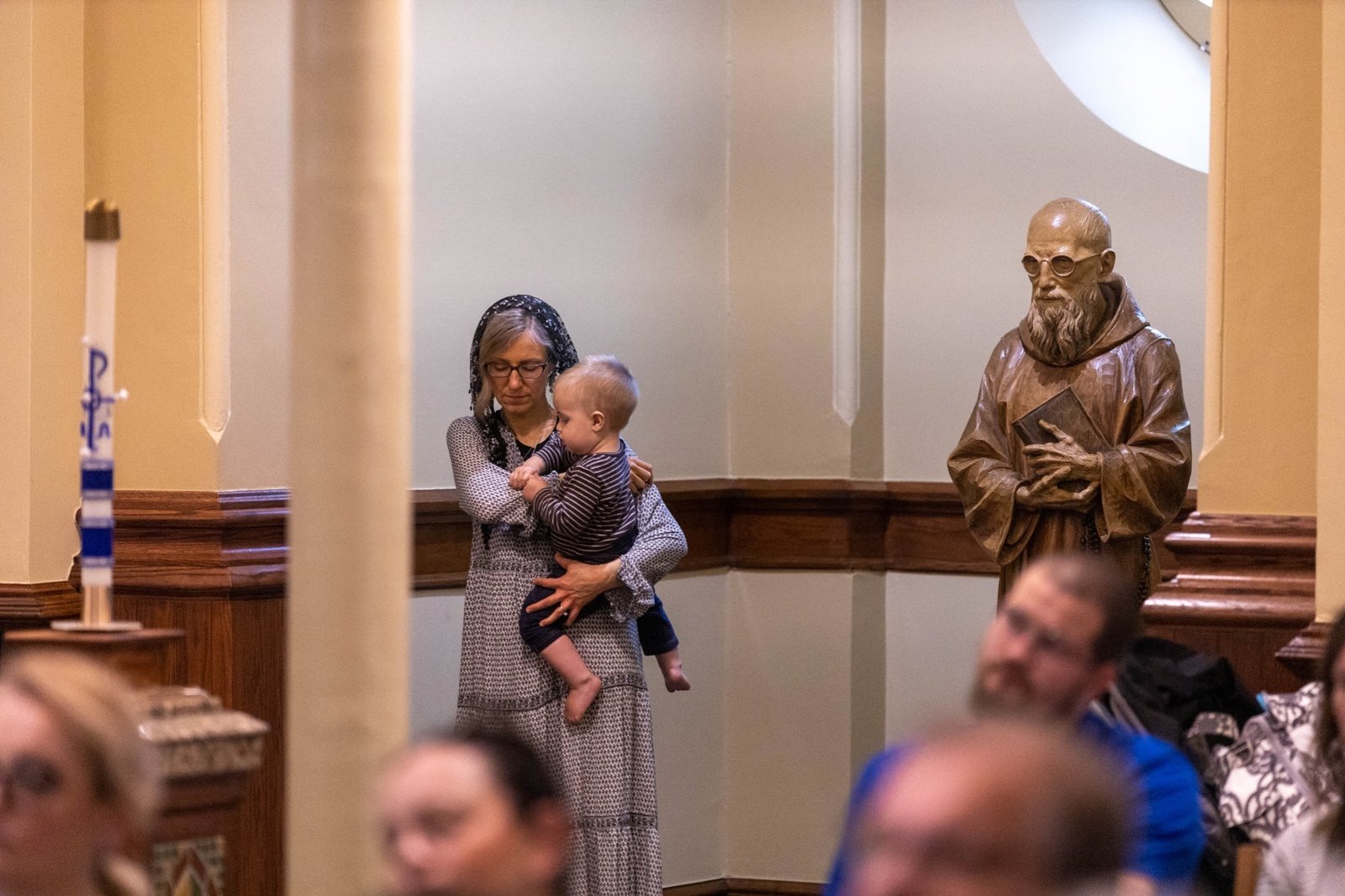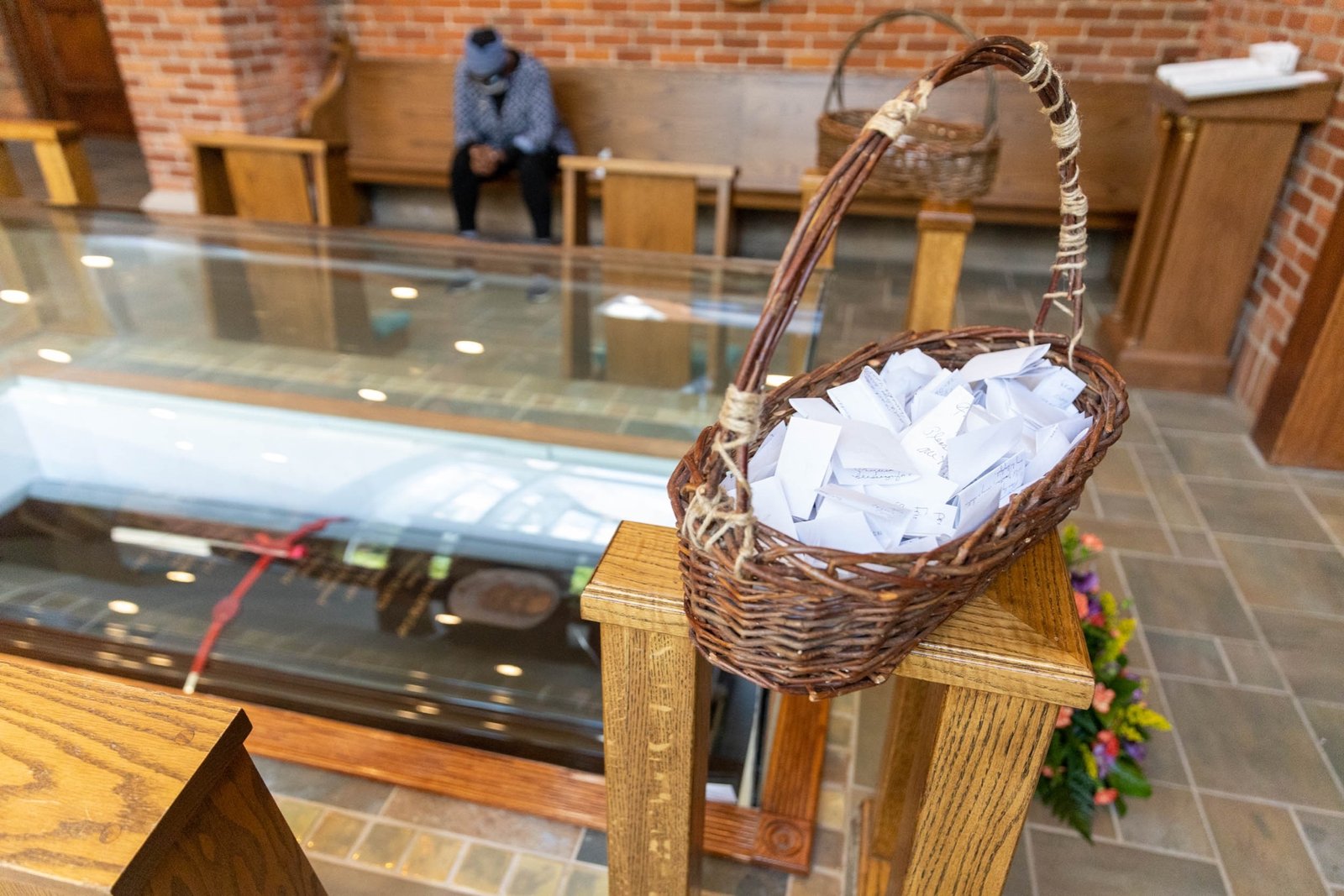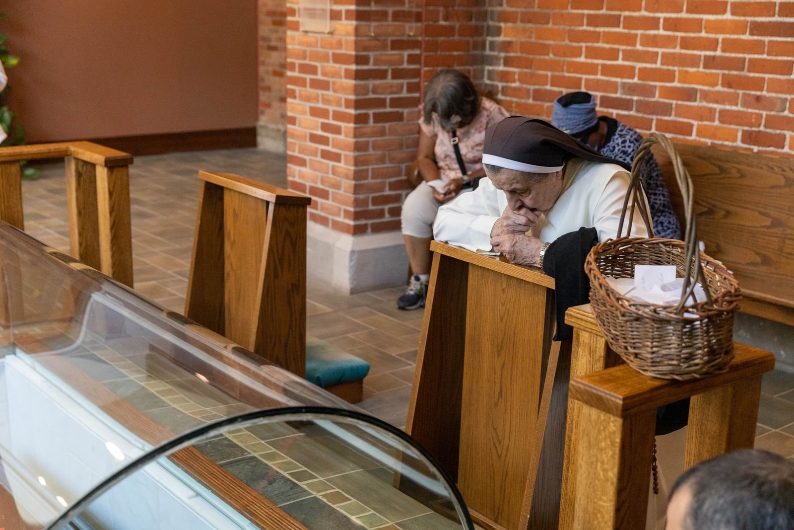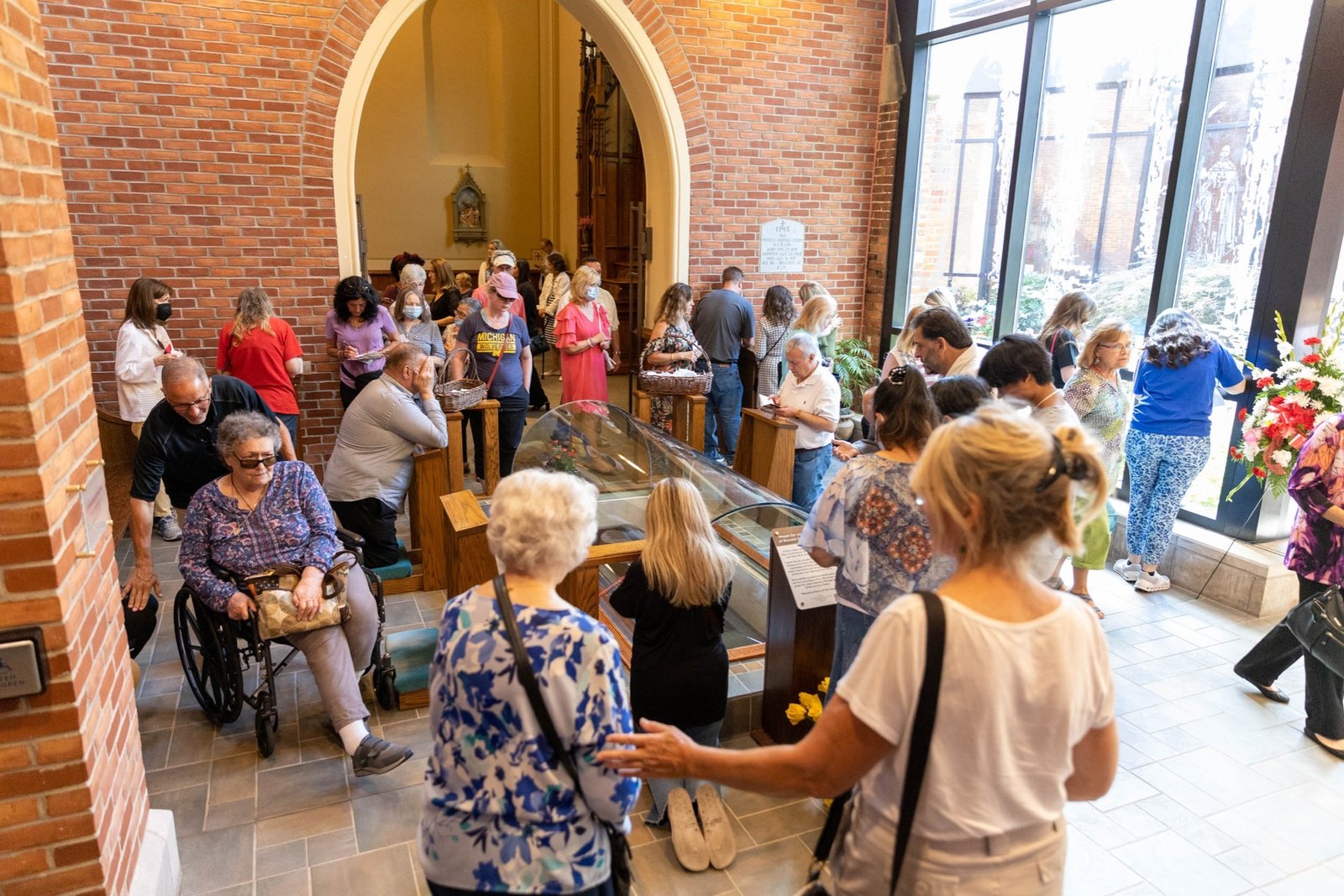 Antes y después de las misas, los peregrinos se detuvieron a rezar ante la tumba del Beato Solanus, dejaron sus intenciones de oración y visitaron la nueva adición del centro, que incluye una nueva tienda de regalos y una panadería.