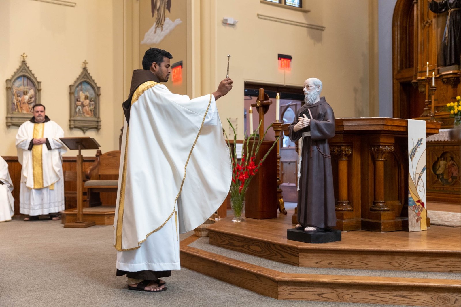 Los frailes capuchinos del monasterio de San Buenaventura presidieron tres misas distintas durante la fiesta, que culminó una novena de nueve días en la que se celebraron diferentes aspectos de la vida y el ministerio de este portero.