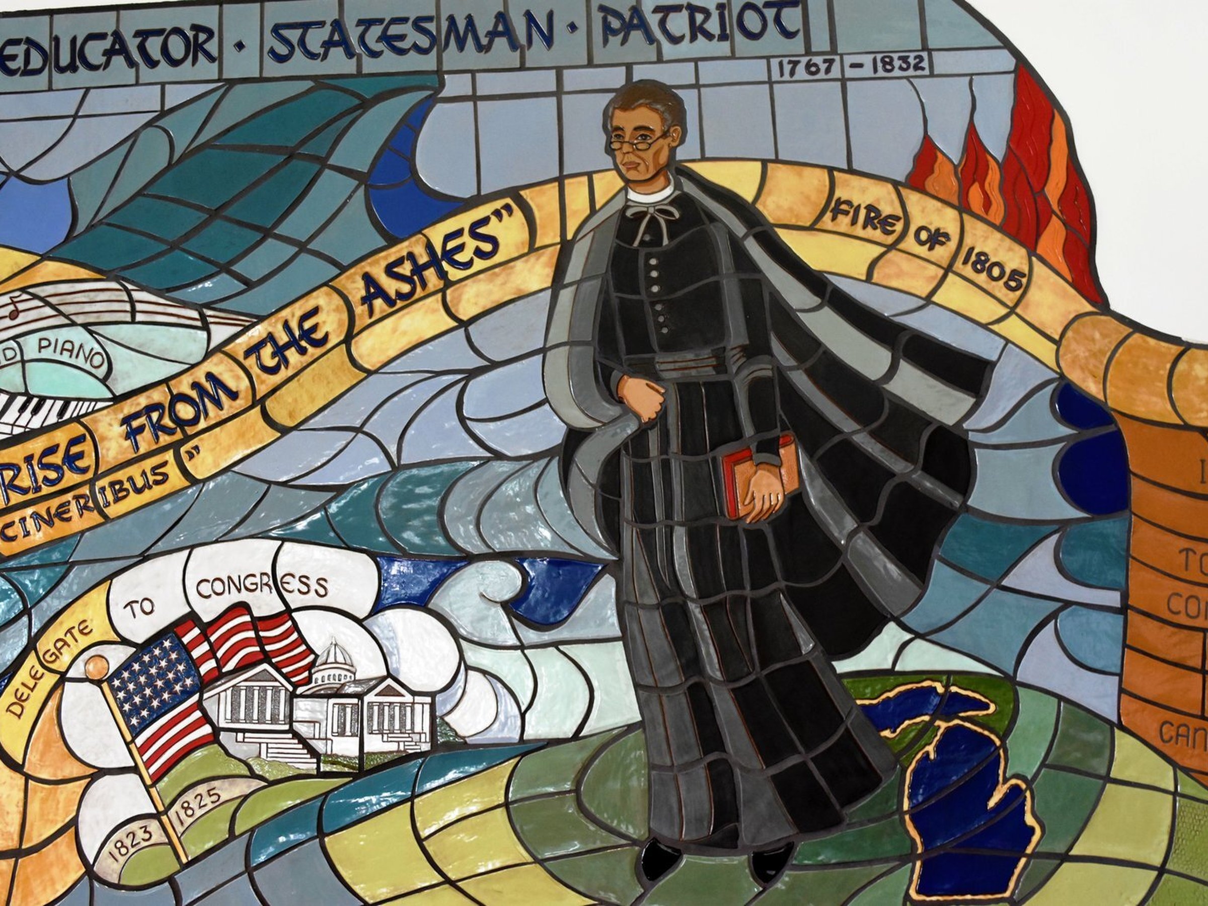 Cuando visitaron el Huntington Place para conocer el lugar, se encontraron con un mural del P. Gabriel Richard. Para ellos fue una señal clara de que ese era el espacio donde Dios quería reunir a su pueblo para el Rising from the Ashes Revival, nombre inspirado en la frase que el P. Richard proclamó tras el incendio de Detroit en 1805 y que con el tiempo se convertiría en el lema de la ciudad: “Esperamos cosas mejores. Resurgirá de las cenizas”.