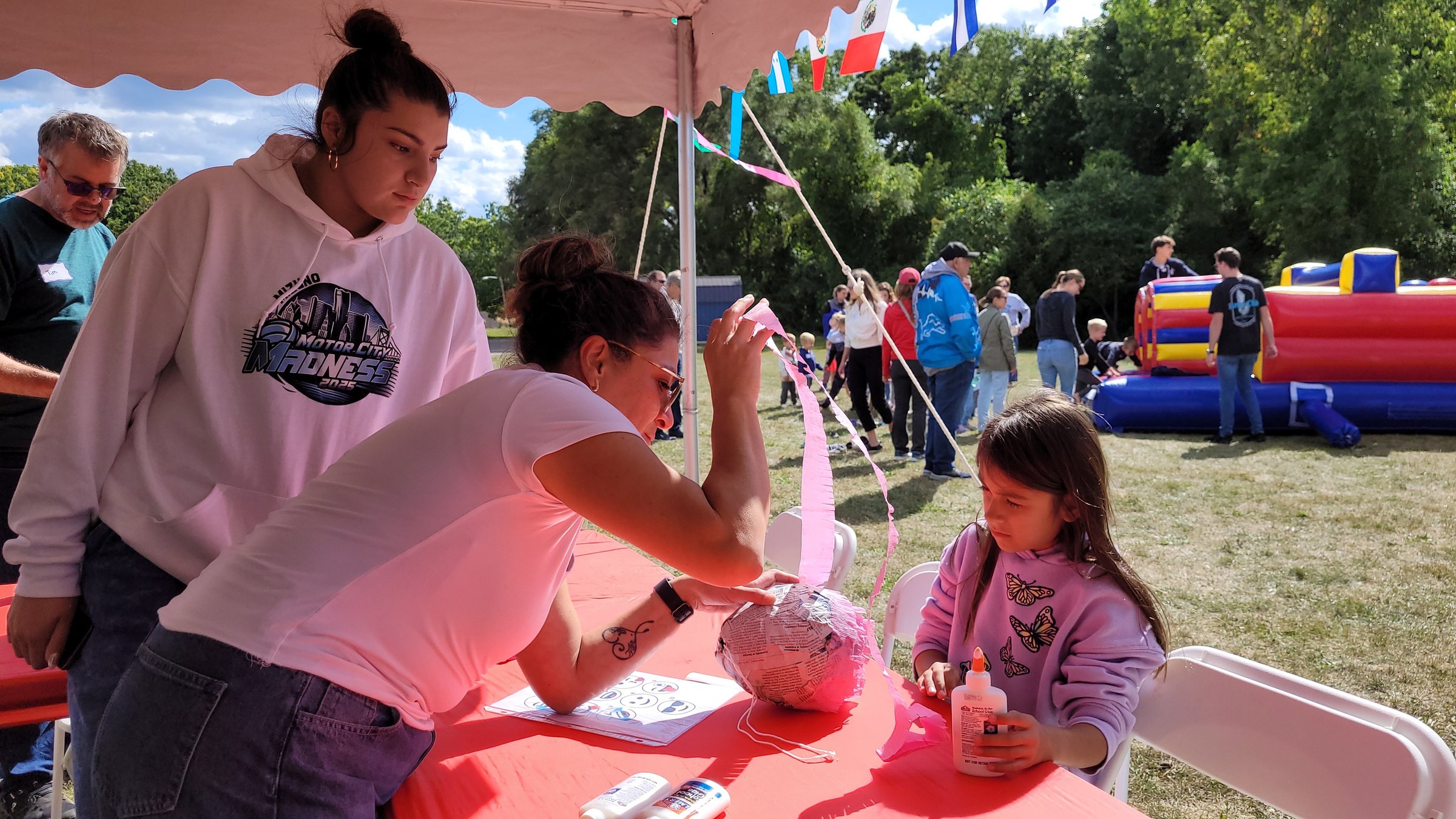 “Hace cuatro años surgió la idea de estar presentes en el picnic y colaborar en una carpa con alguna actividad para los niños. Decidimos hacer la decoración de piñatas”, explicó Conchis. Hoy, más de 15 voluntarios hispanos se suman a la iniciativa, incluidos jóvenes adultos que participan junto a sus madres.