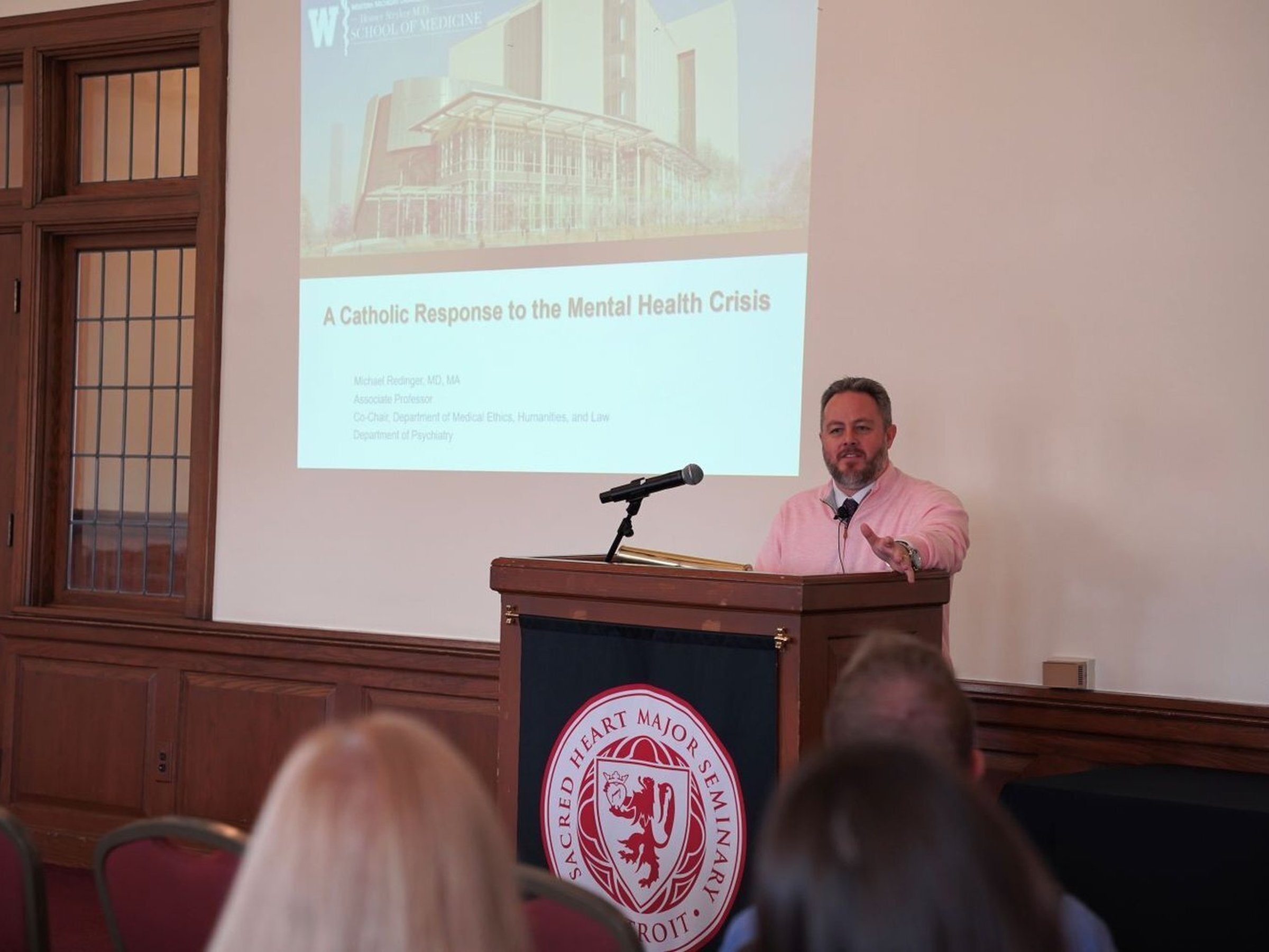 Después de la Misa de la Rosa, los profesionales de la salud participaron de una charla a cargo del Dr. Michael Redinger, profesor asociado en la Homer Stryker M.D. School of Medicine de Western Michigan University, quien reflexionó sobre cómo puede responder la Iglesia ante la actual crisis de salud mental.