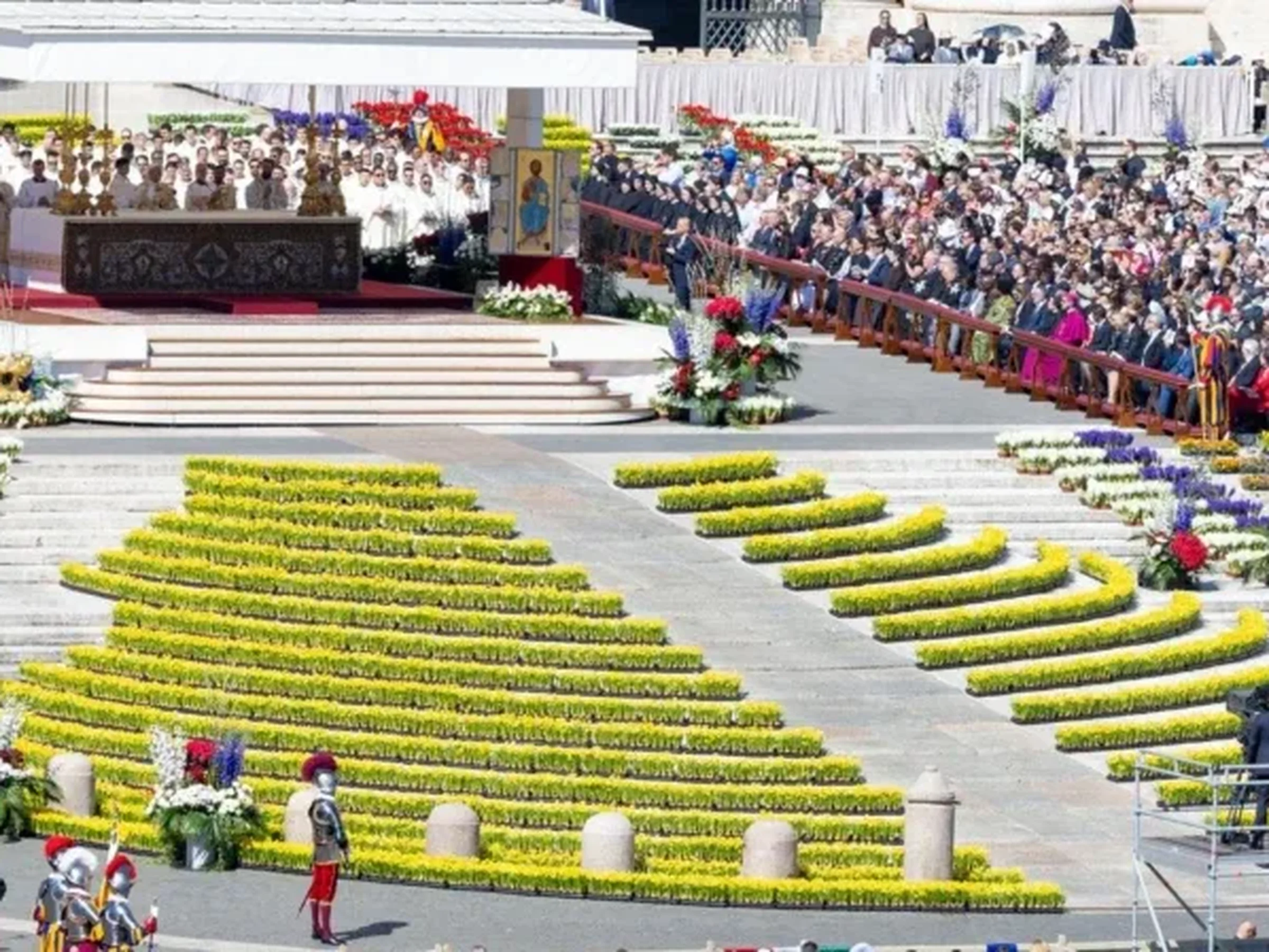 Como cada año en el Domingo de Pascua, la Plaza de San Pedro lució como una alfombra multicolor formada por miles de flores llegadas desde los Países Bajos, una tradición que este año cumplió cuatro décadas.