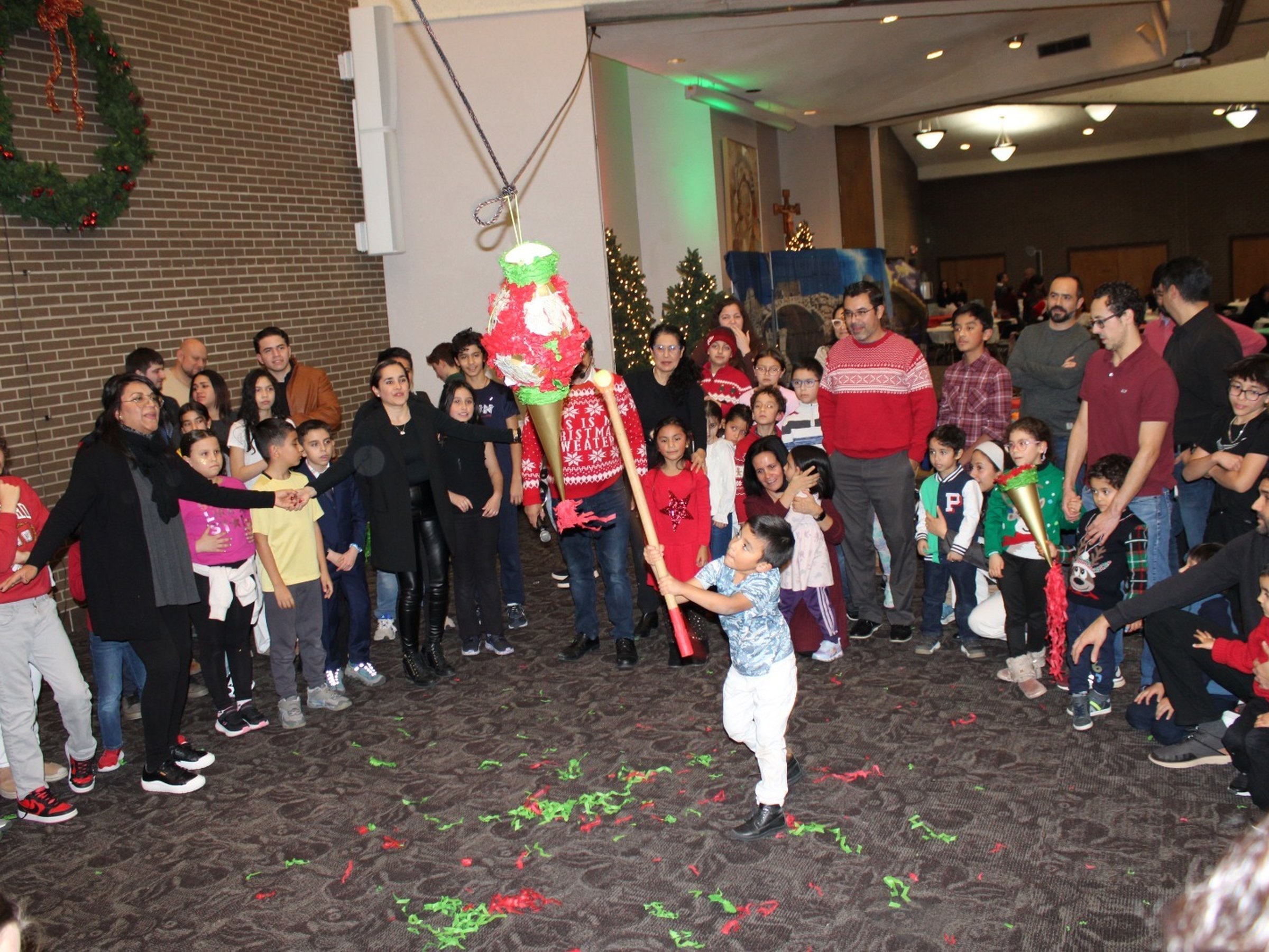 Tras la Misa en español, los fieles participan en una procesión por las instalaciones parroquiales, acompañada de cantos y oraciones. Luego, se representa la petición de posada, recordando el camino de María y San José antes del nacimiento de Jesús. La celebración continúa con piñatas, cantos navideños, una cena comunitaria y una representación en la que los niños participan activamente hasta el encuentro con el Niño Dios.