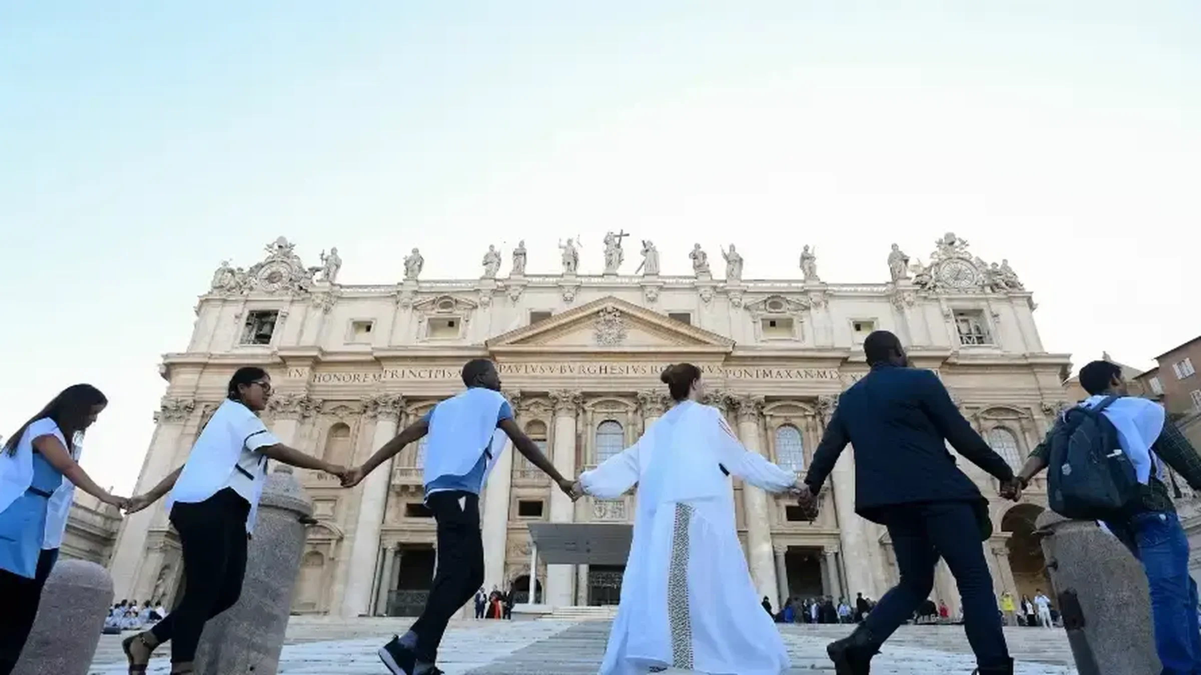 Jóvenes de Ucrania y Rusia se abrazan en la Plaza de San Pedro