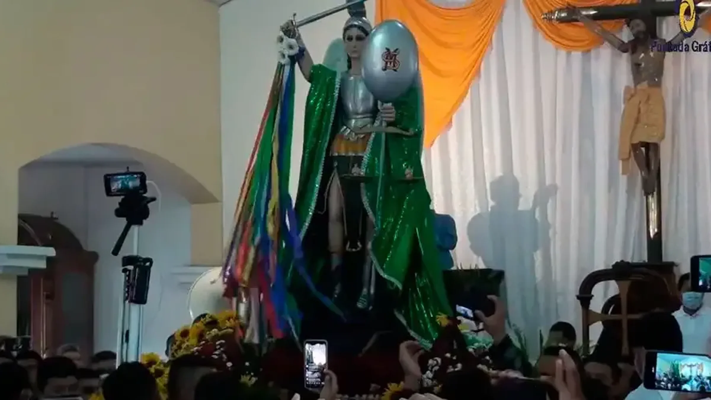 Según se ve en un video difundido en redes sociales y por el diario nicaragüense La Prensa, el comisionado ingresó a la iglesia con varios policías, cuando los fieles daban vivas a San Miguel Arcángel, vestido especialmente con un manto verde por su fiesta patronal.