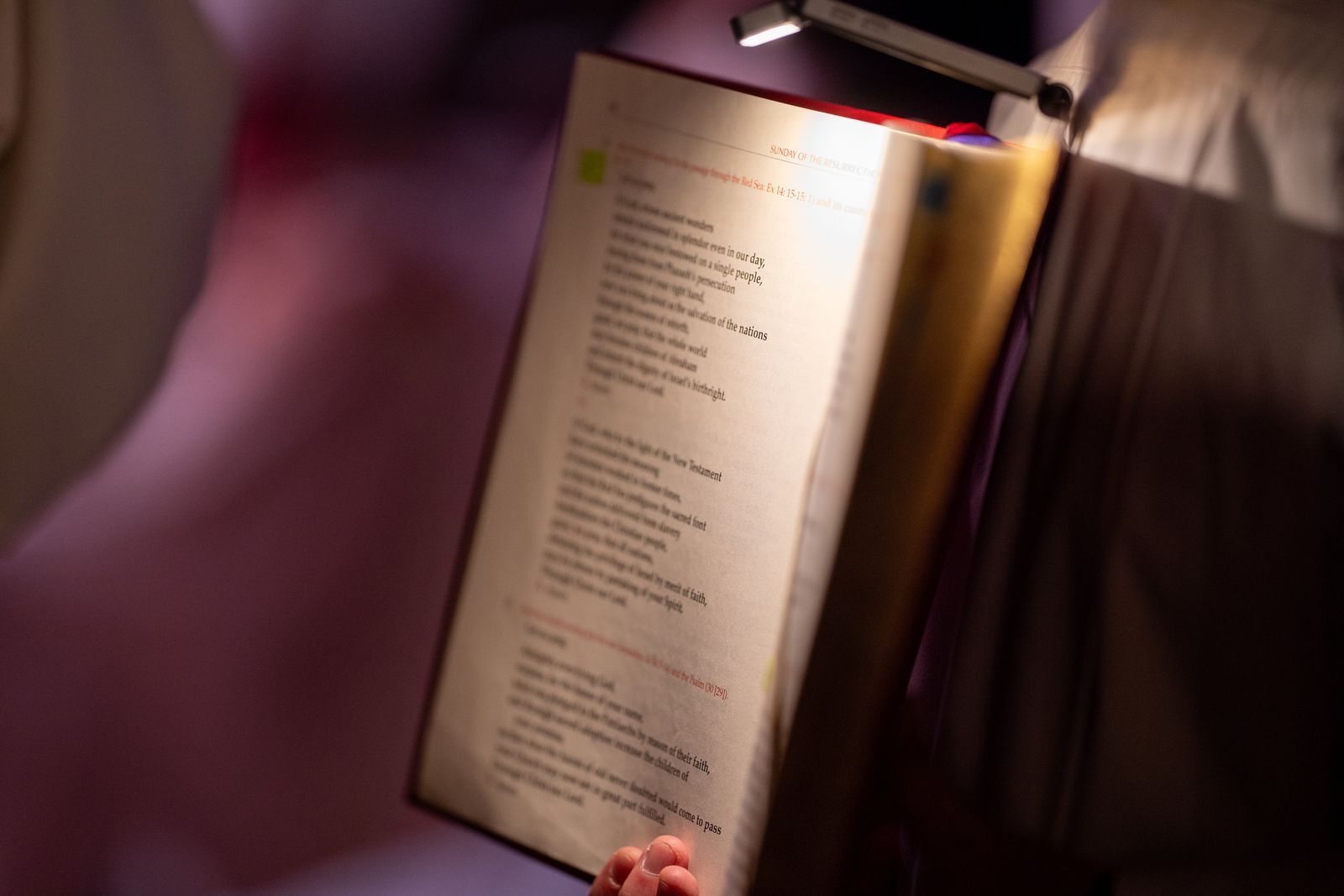 La Vigilia Pascual de este año —la primera del arzobispo Weisenburger al frente de la Arquidiócesis de Detroit— comenzó con la bendición del fuego y el encendido del cirio pascual, en el que estaban grabados el año 2025 y una cruz, símbolo de la muerte de Cristo por la cual la muerte misma ha sido vencida.