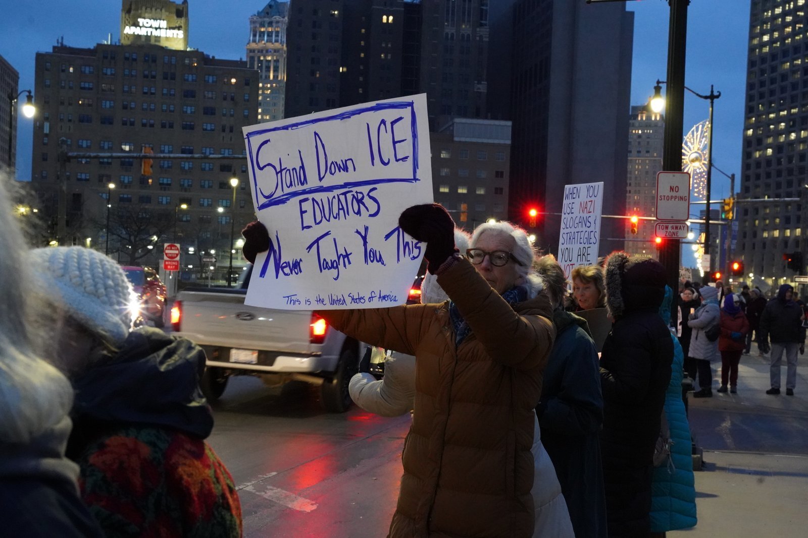 DETROIT — El 14 de enero, aproximadamente 80 personas se reunieron antes del amanecer frente a las oficinas del Servicio de Inmigración y Control de Aduanas (ICE) en Detroit, ubicadas sobre Michigan Avenue, para manifestarse a favor de los derechos de los inmigrantes y reclamar el cese de las operaciones de ICE en la ciudad.