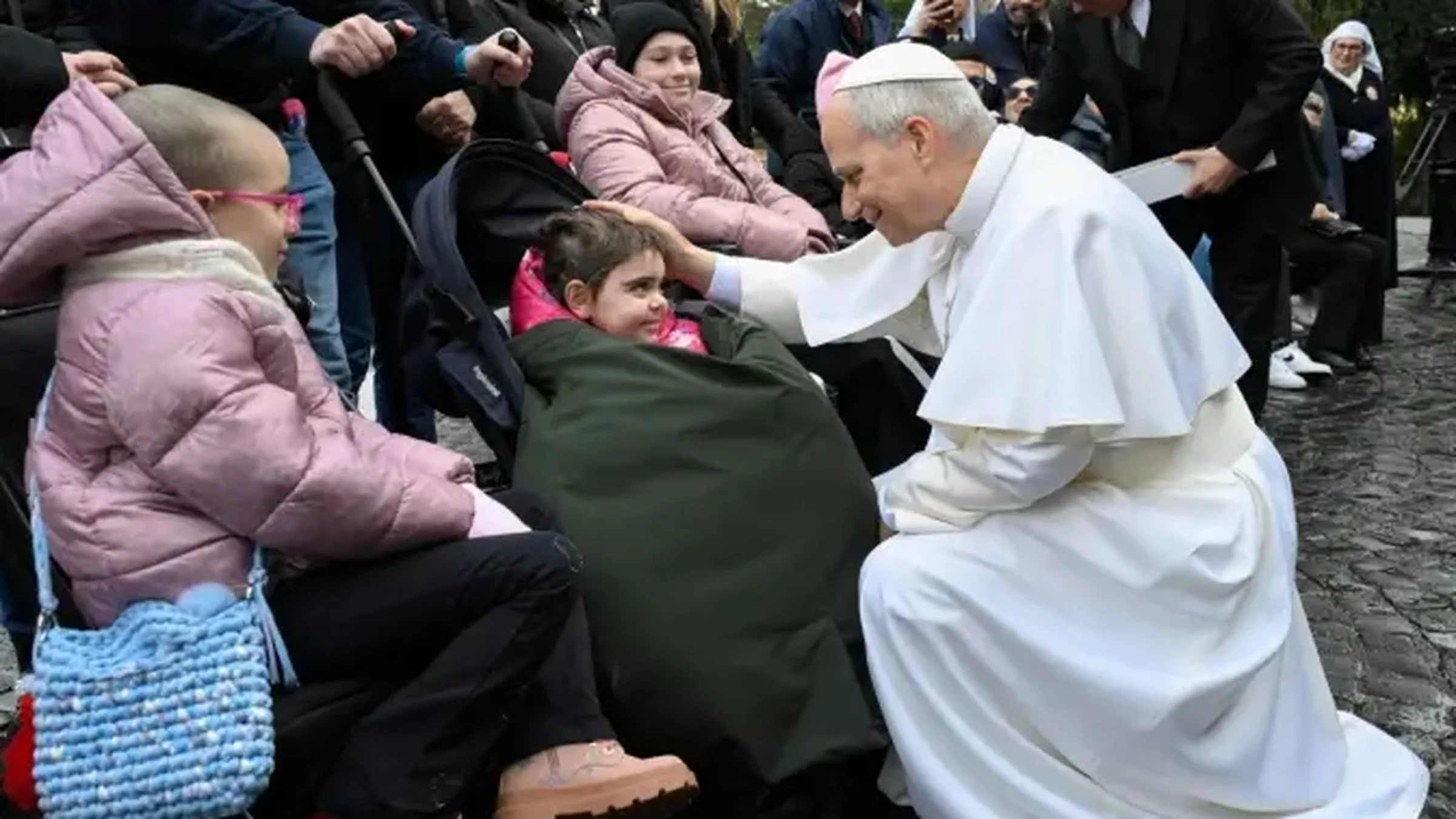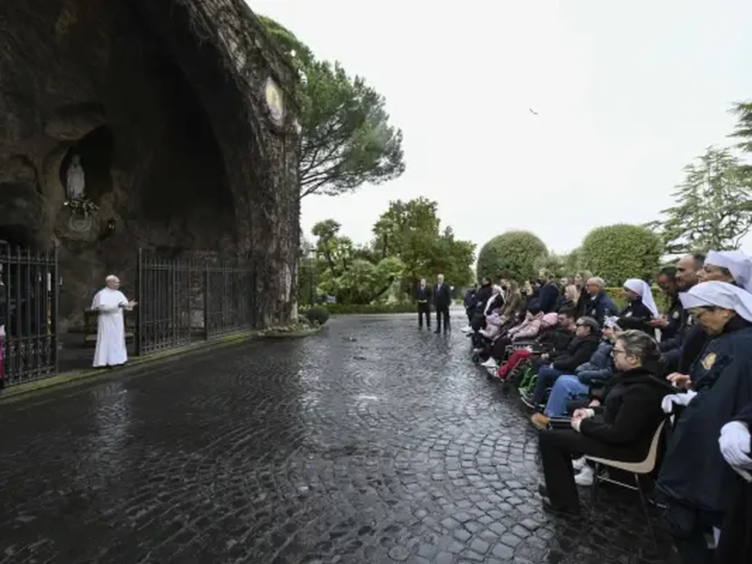 Junto al Pontífice se encontraba un pequeño grupo de enfermos acompañados por hospitalarias de Lourdes y algunos familiares, a quienes les agradeció su presencia.